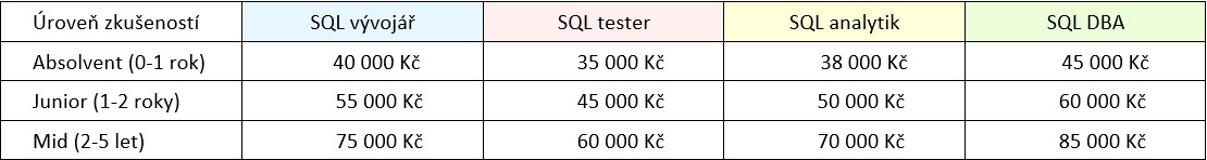 • QL vývojář – píše a optimalizuje SQL dotazy pro různé aplikace